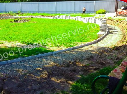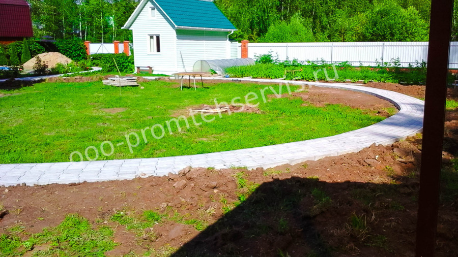Укладка вибролитой тротуарной плитки "Английский булыжник".